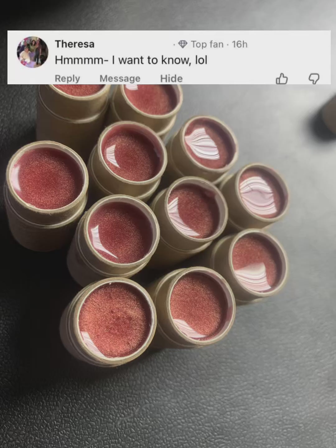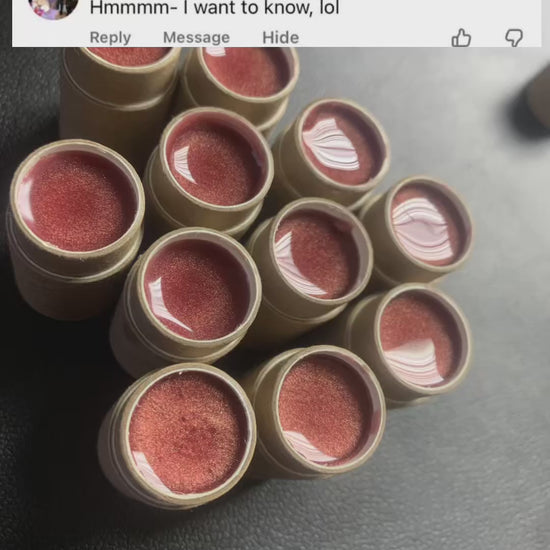 Ingredients: Coconut Oil, Shea Oil, Beeswax, Jojoba Oil, Castor Oil, Sangria Flavor, Mica, Iron Oxide
